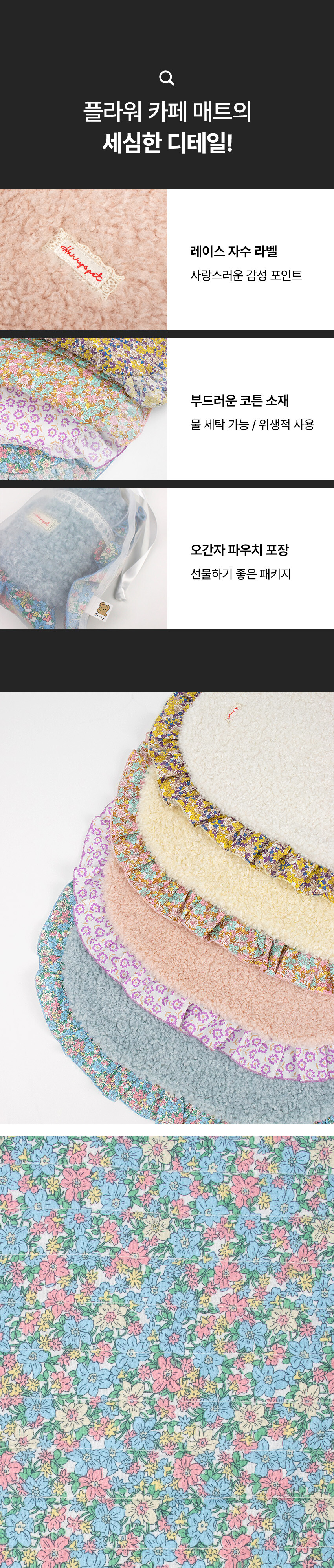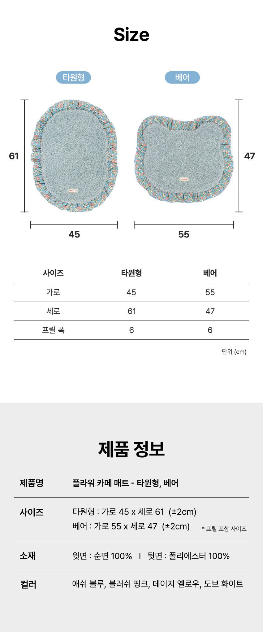 코스터 - 플라워 카페 매트 (타원형, 베어)