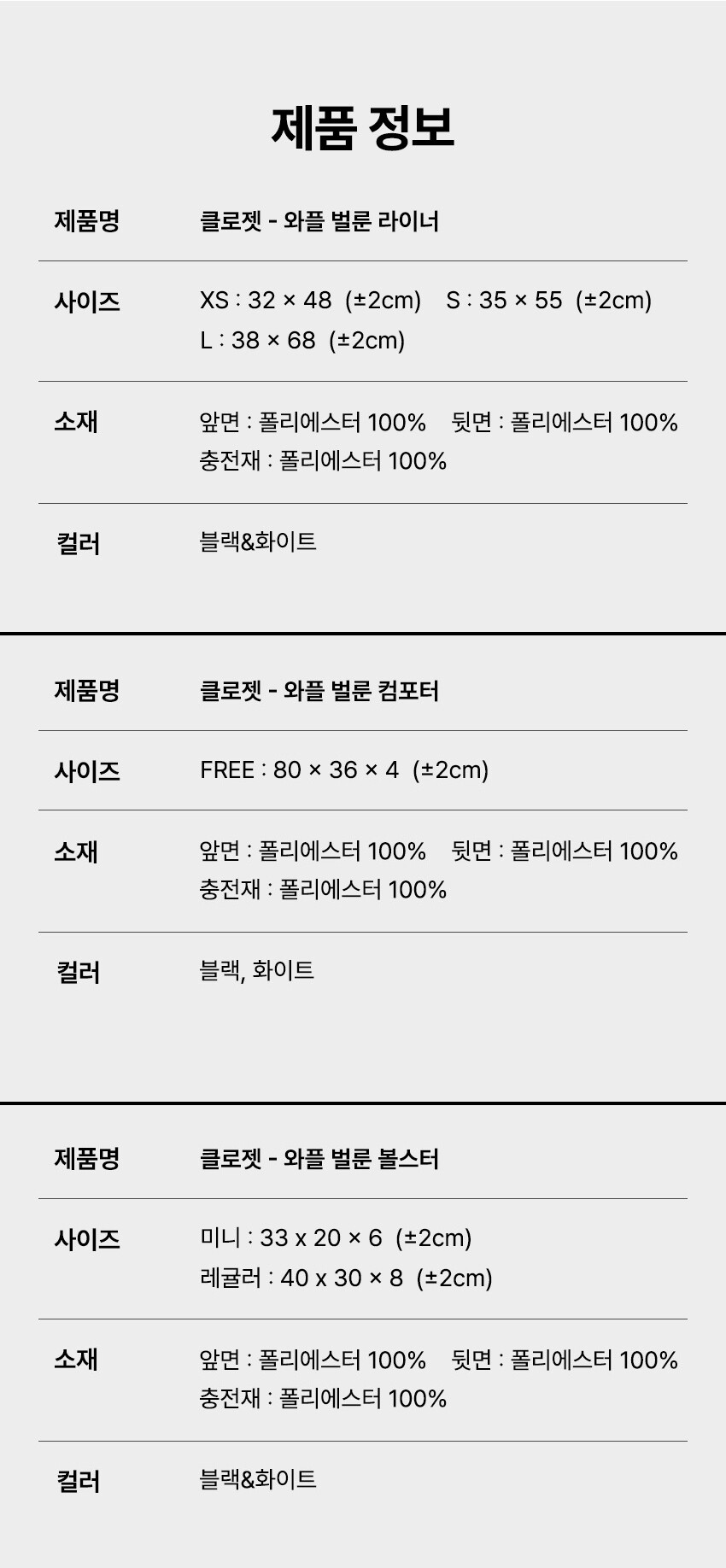라이너+컴포터+볼스터 3종세트 - 클로젯 와플 벌룬, 블랙