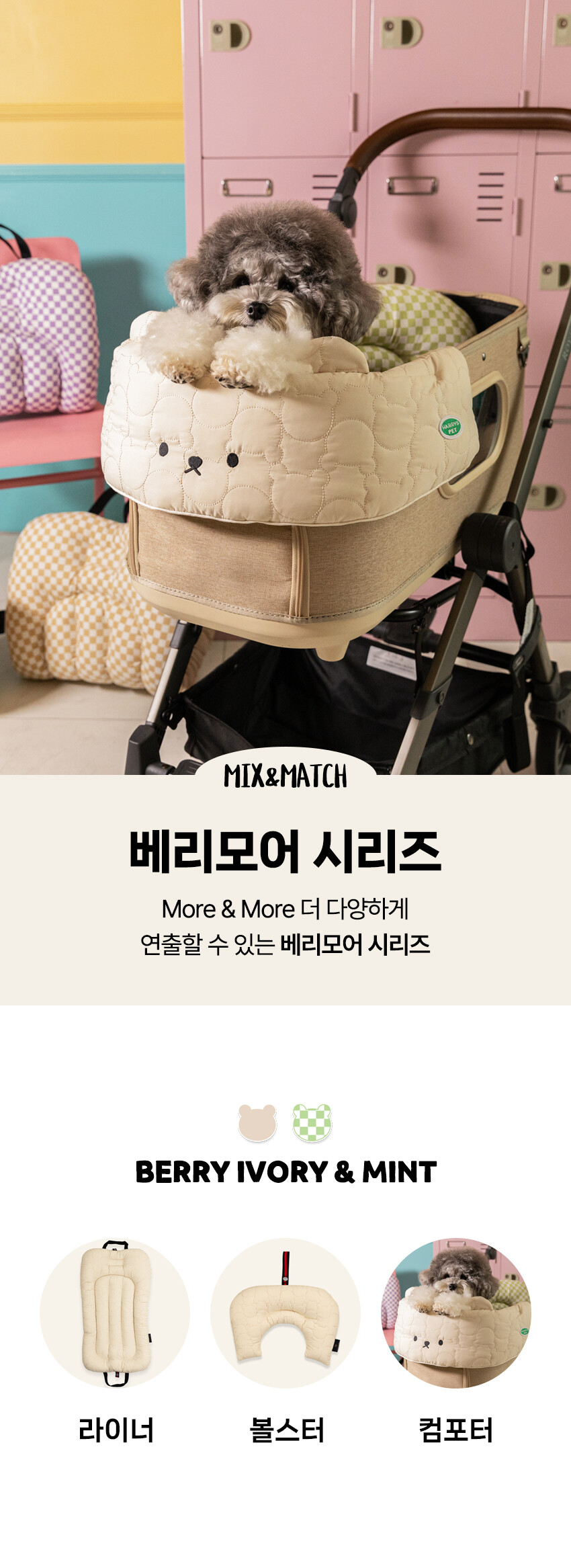 라이너+컴포터+볼스터 3종세트 - 베리모어 투웨이, 아이보리&민트
